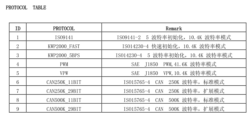 No. | Model Name | Protocol Standard |